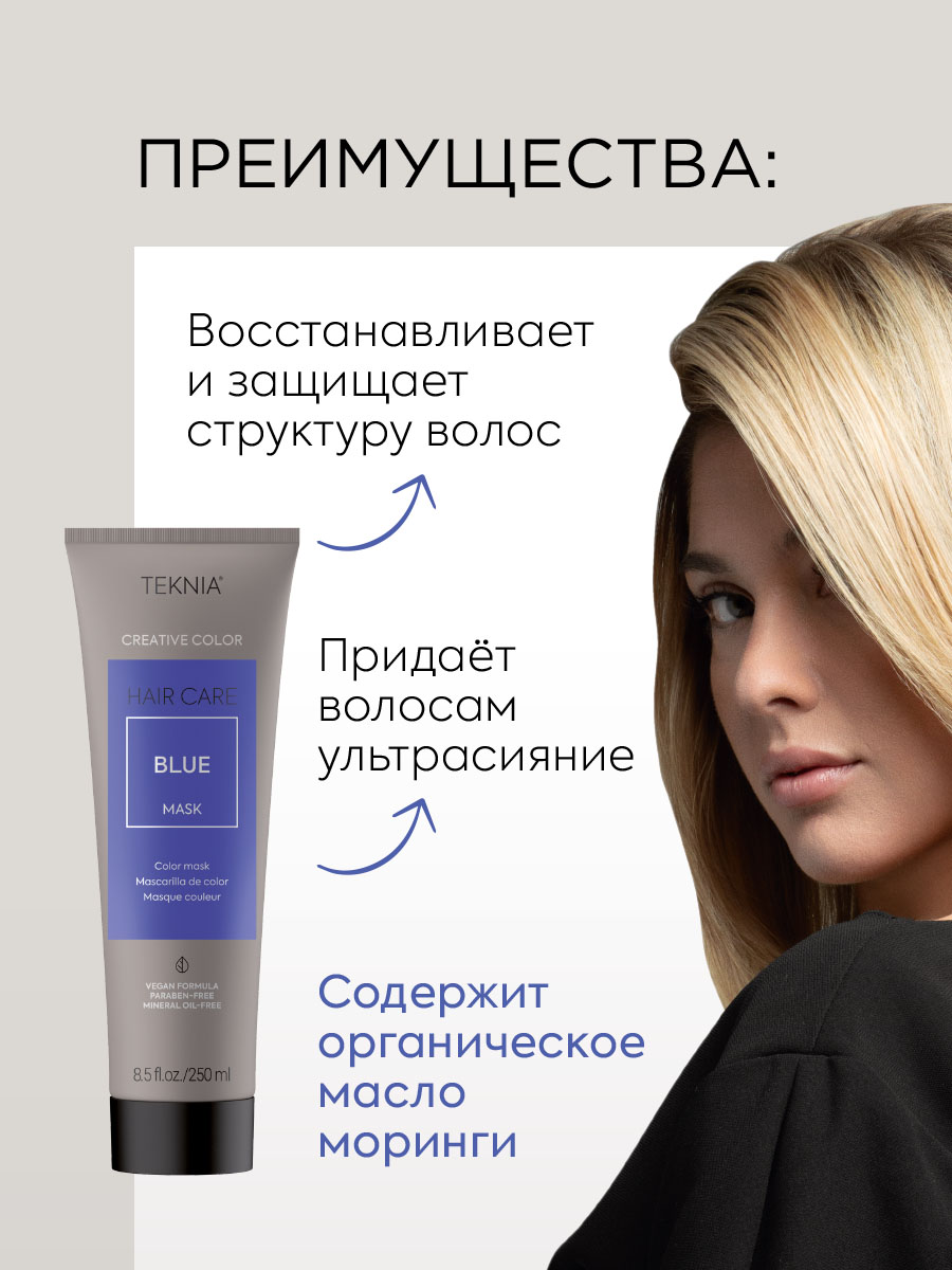 Маска тонирующая - оттенок синий 250 мл. Цвет ярче проявляется на обесцвеченных волосах.