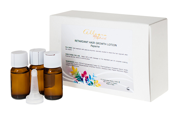 Содержит фермент папаин, который воздействует избирательно на волосяной фолликул и разрушает его клетки, тем самым, увеличивая интервалы между процедурами.
