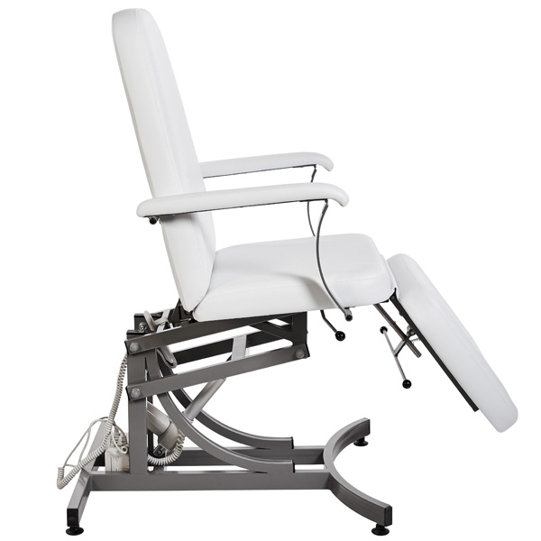Косметологическое кресло ЭЛЕКТРА 1 оснащено одним электромотором. Данная классическая модель имеет надежный металлический каркас, гарантирующий устойчивость кресла при эксплуатации, и возможность дополнительно регулировать ряд параметров:
