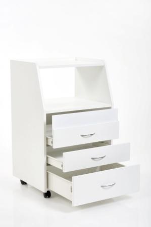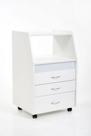 Многофункциональный передвижной столик БЬЮТИ выполнен из ламинированного ДСП с тремя выдвижными ящиками и открытой полкой. Верхний ящик оснащен УФ-лампой (8Вт) для хранения стерилизованных инструментов.