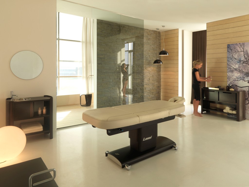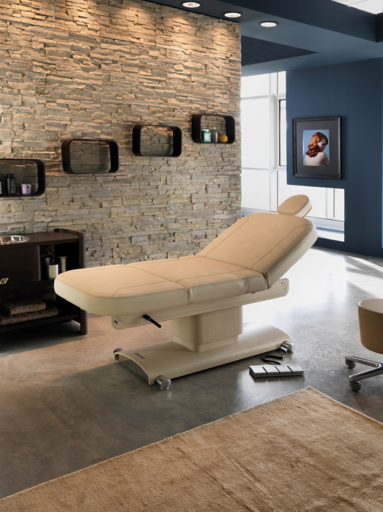 Многофункциональная кушетка CENTRUN для массажа и SPA процедур для лица и тела, способна обеспечить максимальный комфорт. Кушетка оснащена тремя электромоторами, с помощью которых регулируются высота, наклон спинки и сидения (ножной части), регулировки осуществляются за счет ножного пульта управления. Комплектуется американским подголовником с отверстием для лица. Основание кушетки изготовлено из натурального дерева.