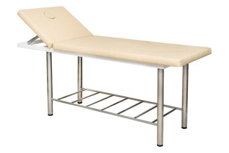 Кушетка массажная стационарная на металлическом хромированном каркасе с механической регулировкой подголовника и отверстием для лица. Мягкий элемент кушетки выполнен из высококачественного поролона, обшитого искусственной кожей.