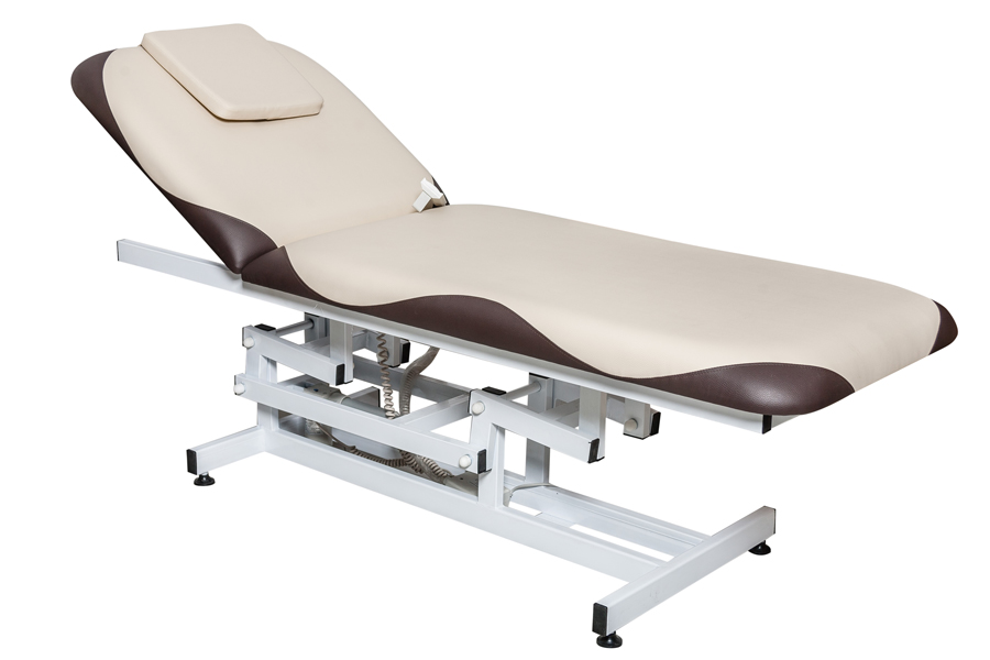 Многофункциональная кушетка для массажа оснащена одним электромотором, позволяющим регулировать высоту кушетки. Угол наклона спинки регулируется механически.