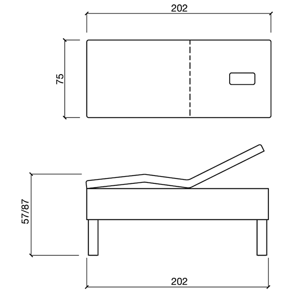 Размер (ДхШхВ): 75х202хH57-87 см