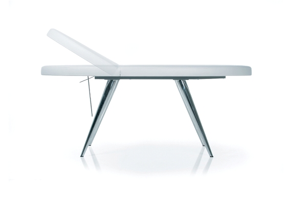 Кушетка массажная овальной формы. Кушетка оснащена механическим механизмом регулировки наклона спинки и матрасом с отверстием для лица. Каркас кушетки, изготовленный из металла, обеспечивает высокое качество и прочность. Обивка - искусственная кожа высшего качества.