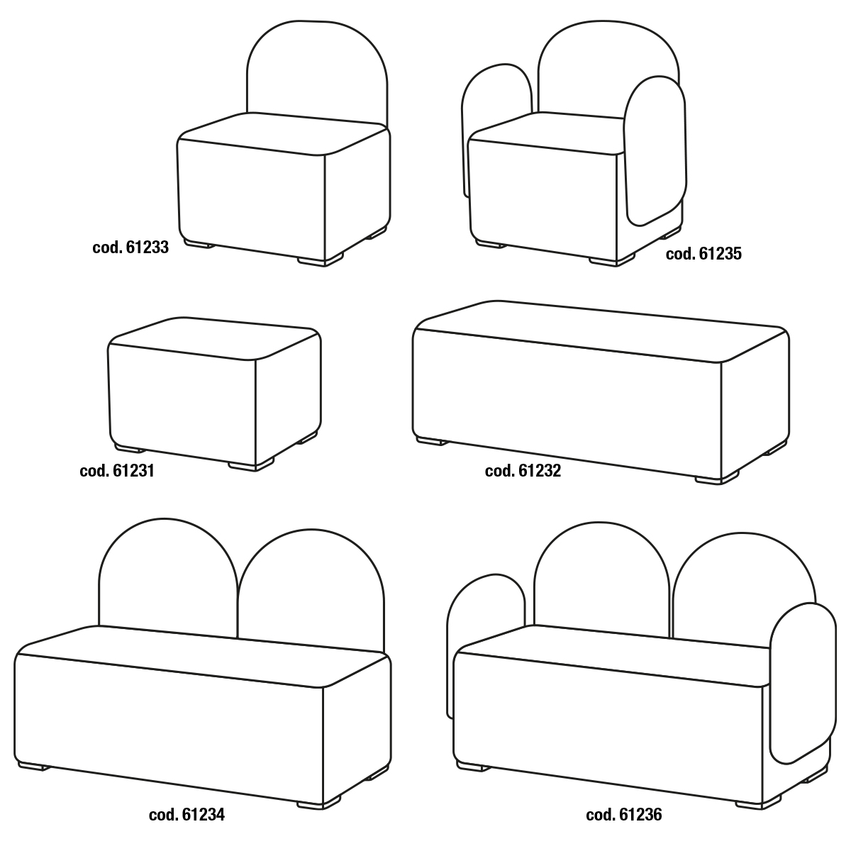 61232C - Colibri db: диван без подлокотников и спинки (SKAI MODA)