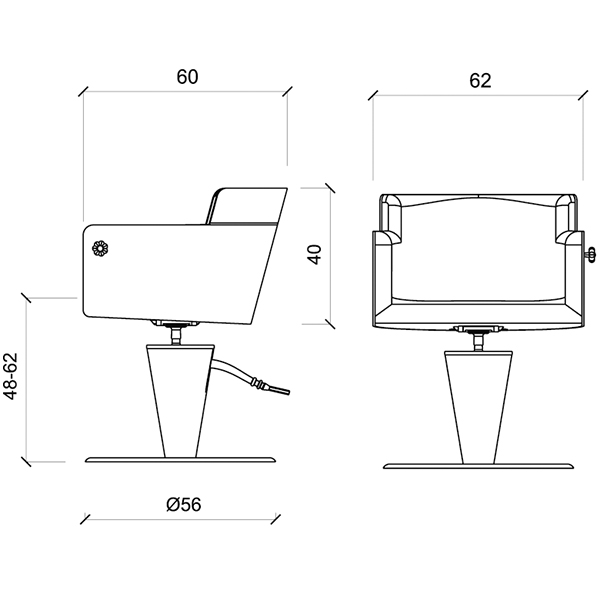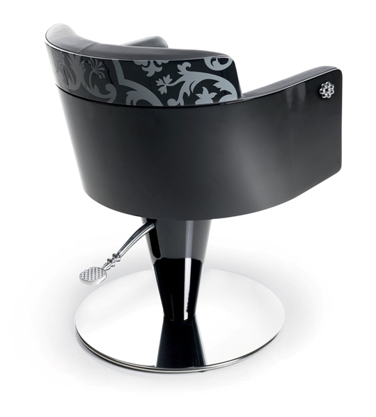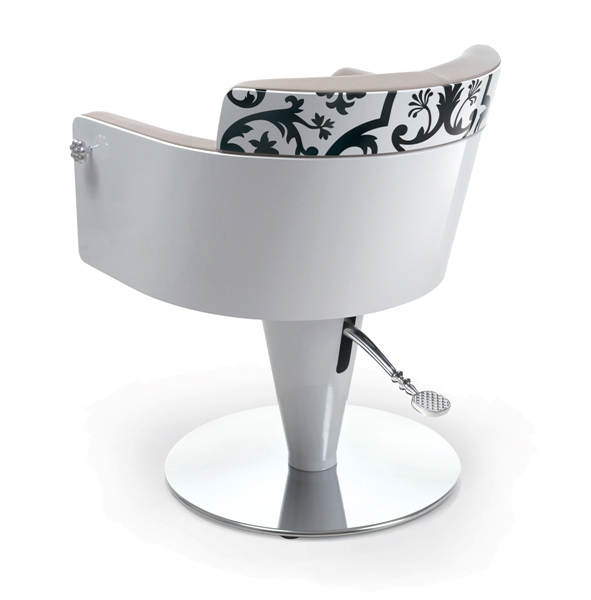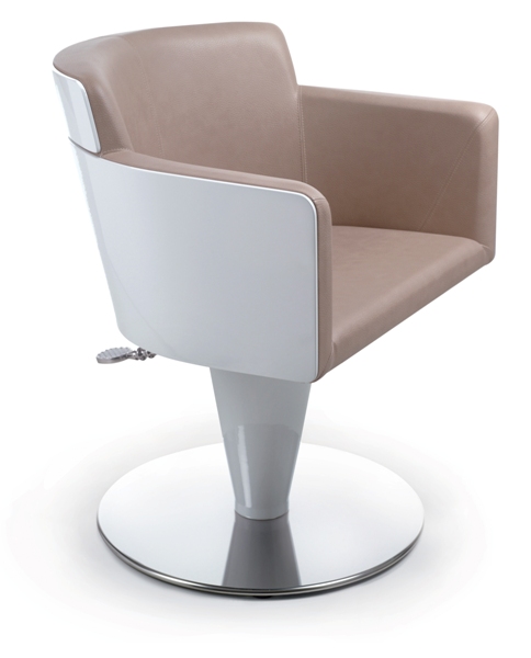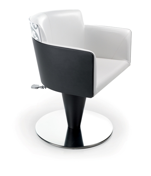 Дизайнерское парикмахерское кресло. Кресло для клиента комплектуется дисковым основанием из нержавеющей стали и гидроподъемником с блокировкой. Кресло оснащено комфортными подлокотниками и декоративной ручкой для подвешивания сумок, обеспечивая клиенту максимальный комфорт. Обивка - искусственная кожа высшего качества.