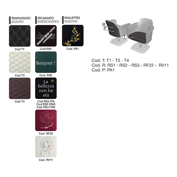 R - Вышивка нитками - область применения отделки для каждой модели индивидуальна (место расположения - по запросу) (RS3 - RF22 - RA32)