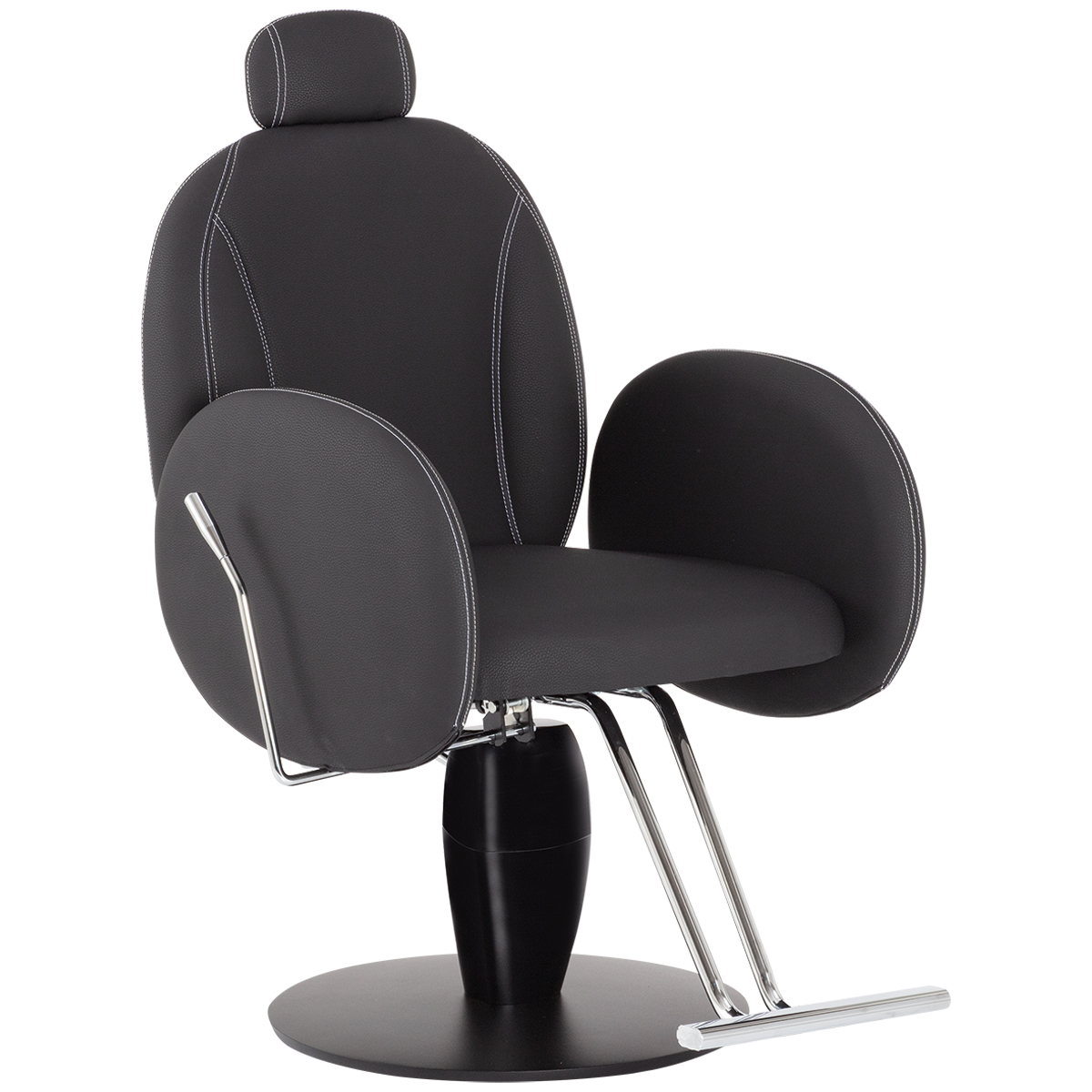Кресло для визажа, каркас кресла выполнен из высококачественного вспененного полиуретана со вставками из металла и многослойной древесины. Кресло оснащено мягкими и комфортными подлокотниками, регулируемой спинкой и подставкой для ног, а также кресло имеет регулируемый по высоте подголовник. Обивка - искусственная кожа высшего качества.