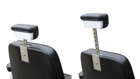 Кресло оснащено гидравлическим подъёмником, съемным и регулируемым по высоте подголовником. Синхронизированная регулировка угла наклона спинки и подножки.