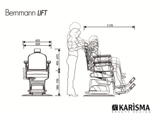 Кресло для клиента – мужское, на электрическом подъемнике с блокировкой на диске. Каркас кресла выполнен из металла. Кресло оснащено мягкими и комфортными подлокотниками, регулируемой спинкой и подставкой для ног, при изменении угла наклона спинка и подножка регулируются синхронно, а также кресло имеет регулируемый по высоте подголовник. Обивка - искусственная кожа высшего качества.