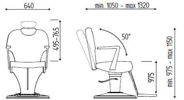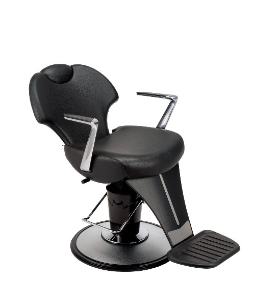 Кресло для клиента – мужское, на гидравлике с блокировкой на диске. Каркас кресла изготовлен из многослойной фанеры, выполнен из высококачественного полиуретана. Кресло оснащено алюминиевыми хромированными подлокотниками, регулируемой спинкой и деревянной подставкой для ног, окрашенной в черный цвет, накладки на пороги из полированной нержавеющей стали, также кресло имеет регулируемый по высоте подголовник. Обивка - искусственная кожа высшего качества.