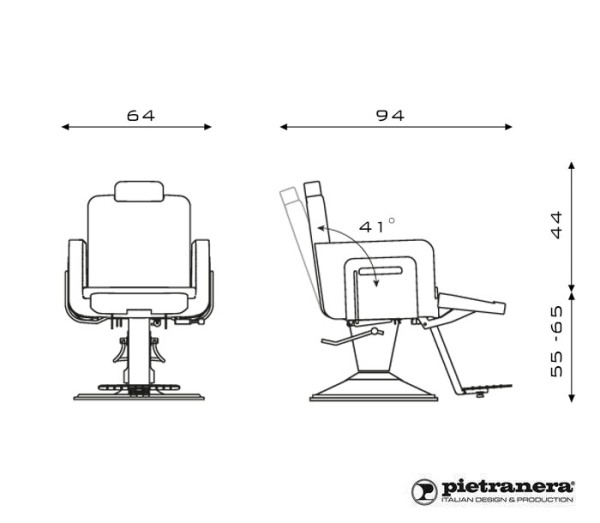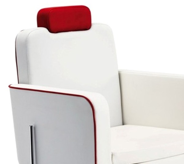 Кресло для клиента – мужское, на гидравлике с блокировкой на диске. Каркас кресла изготовлен из многослойной фанеры. Кресло оснащено мягкими подлокотниками, регулируемой спинкой и подставкой для ног, также кресло имеет регулируемый по высоте подголовник. Обивка - искусственная кожа высшего качества.