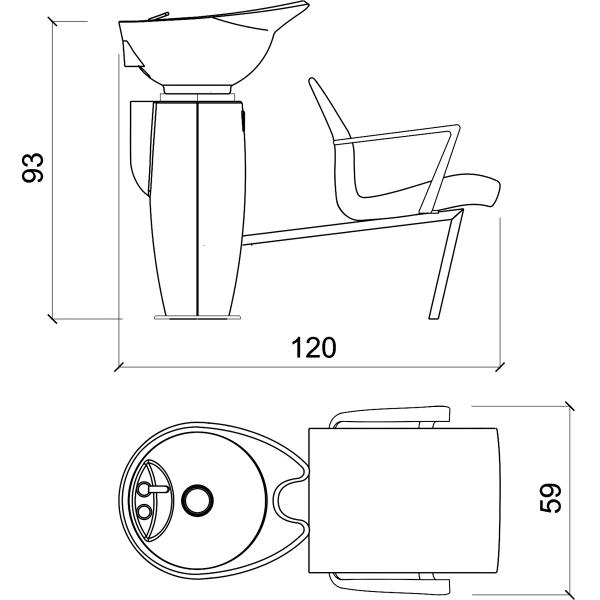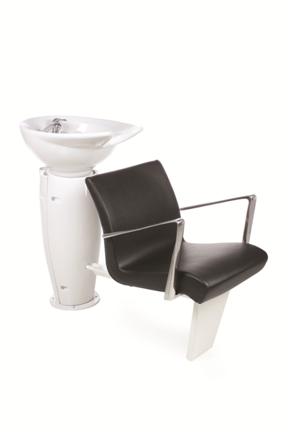 Парикмахерская мойка. Мойка оснащена пластиковым каркасом белого или черного цвета и алюминиевыми подлокотниками. Мойка комплектуется глубокой керамической раковиной с регулировкой угла наклона и комплектом смесителя. Обивка - искусственная кожа высшего качества.