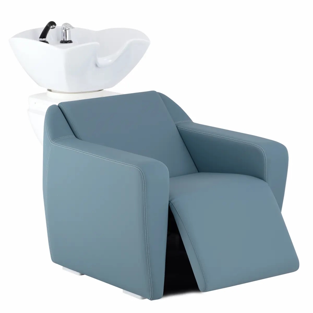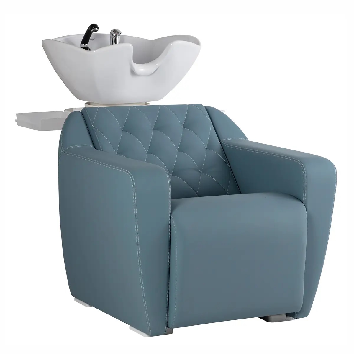 Мойка парикмахерская повышенной комфортности. Каркас, сиденье и спинка выполнены из высококачественного вспененного полиуретана с вставками из дерева и металла. Спинка парикмахерской мойки имеет уникальную стеганную отделку и прострочку ручной работы. Мойка комплектуется глубокой керамической раковиной с регулировкой угла наклона и комплектом смесителя. Обивка - искусственная кожа высшего качества.
