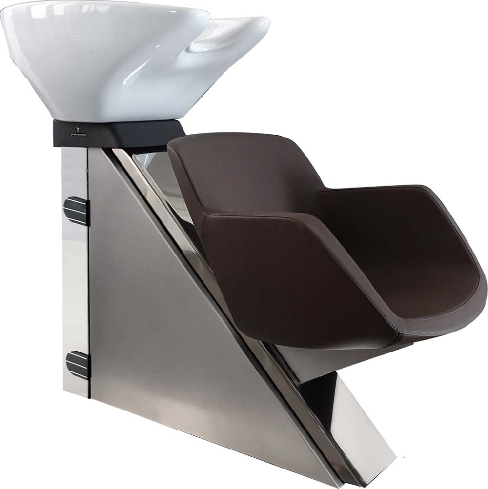 Мойка с каркасом из нержавеющей стали с серебряными или черными боками и креслом для клиента. Каркас кресла выполнен из высококачественного полиуретана. Кресло оснащено мягкими и комфортными подлокотниками. Обивка - искусственная кожа высшего качества. Мойка комплектуется глубокой керамической раковиной с регулировкой угла наклона и комплектом смесителя.