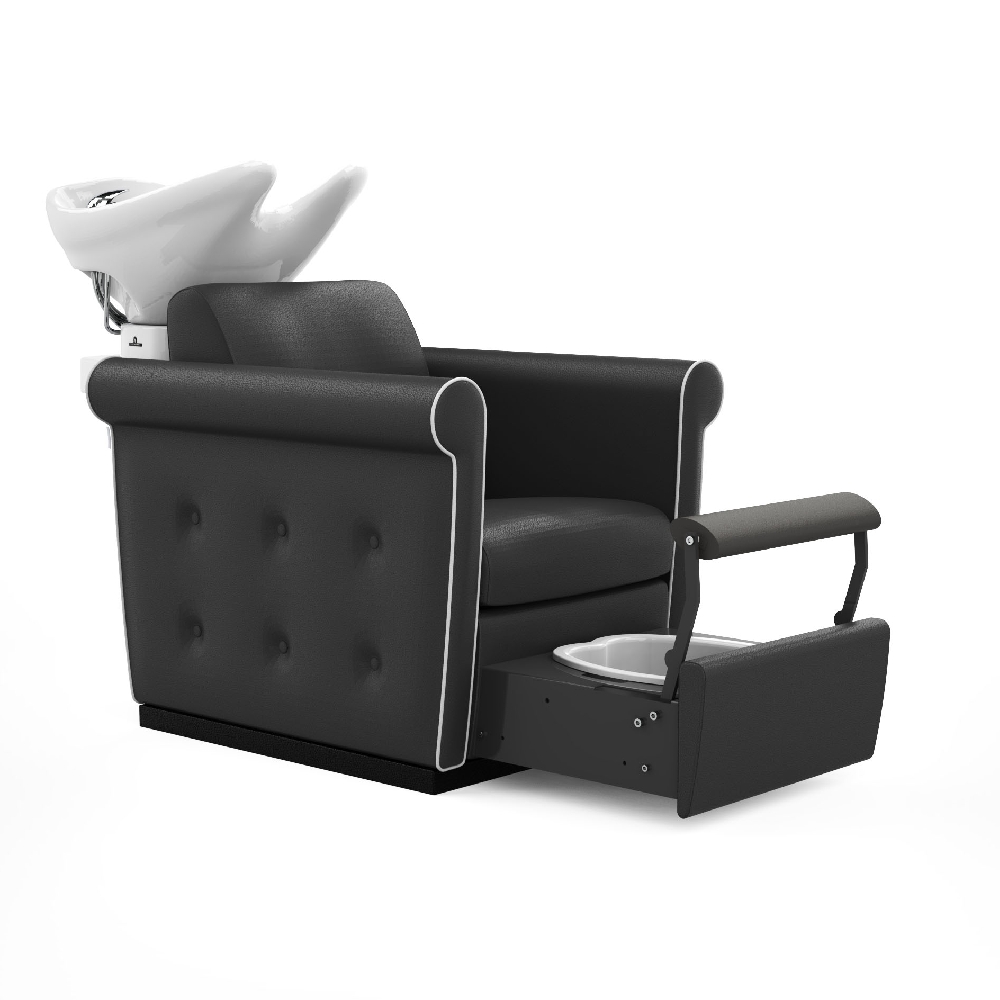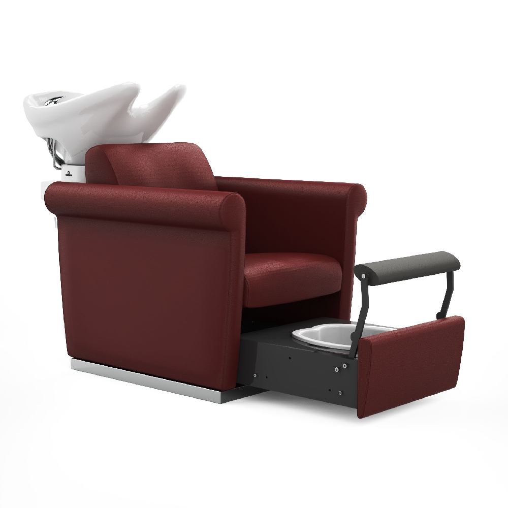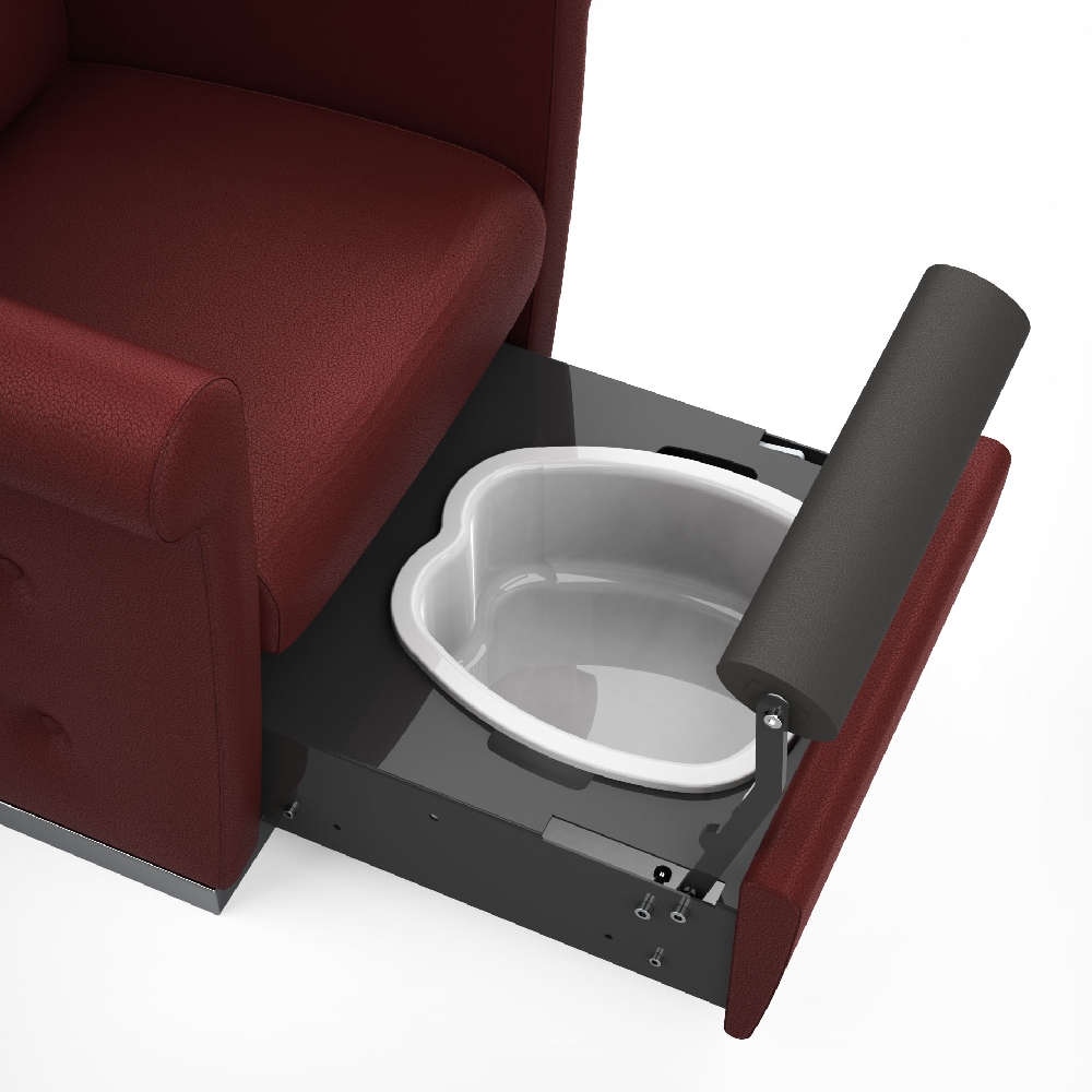 Версия мойки "PEDICHARM" - мойка оснащена выдвижным отделением для педикюра с откидной подставкой для ног и съемной ванночкой.