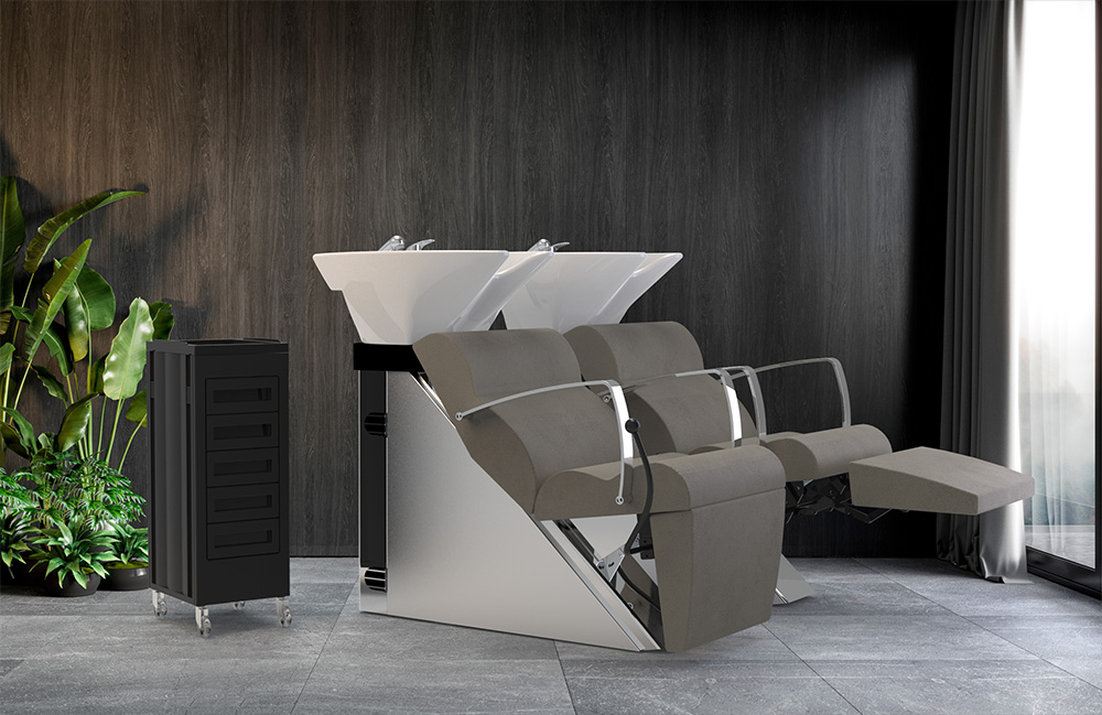 Мойка с каркасом из нержавеющей стали с серебряными или черными боками и креслом для клиента. Каркас кресла выполнен из высококачественного полиуретана. Кресло оснащено литыми алюминиевыми подлокотниками. Обивка - искусственная кожа высшего качества. Мойка комплектуется глубокой керамической раковиной с регулировкой угла наклона и комплектом смесителя.