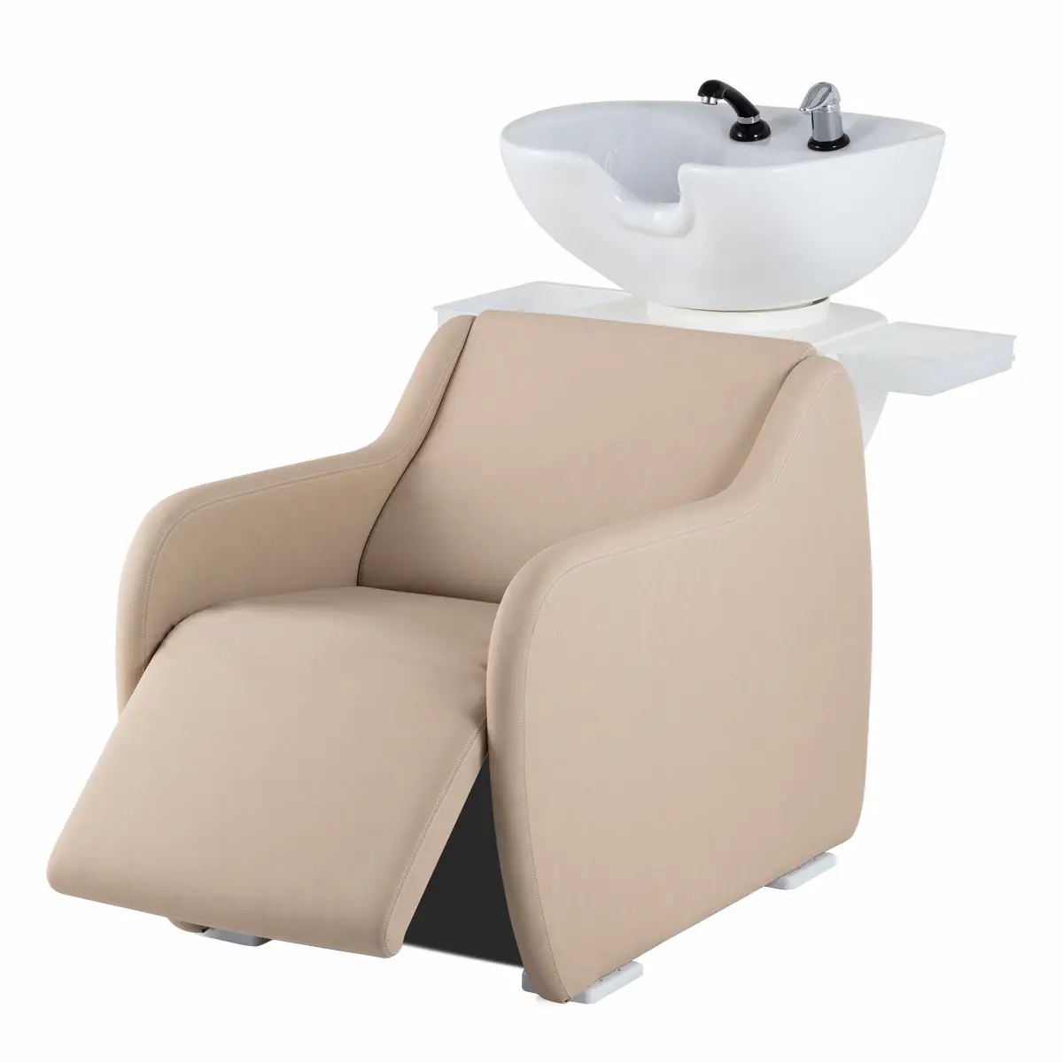 Мойка парикмахерская. Каркас, сиденье и спинка выполнены из высококачественного вспененного полиуретана с вставками из дерева и металла. Кресло оснащено мягкими и комфортными подлокотниками. Мойка оснащена навесными полками для хранения инструментов. Мойка комплектуется глубокой керамической раковиной с регулировкой угла наклона и комплектом смесителя. Обивка - искусственная кожа высшего качества.