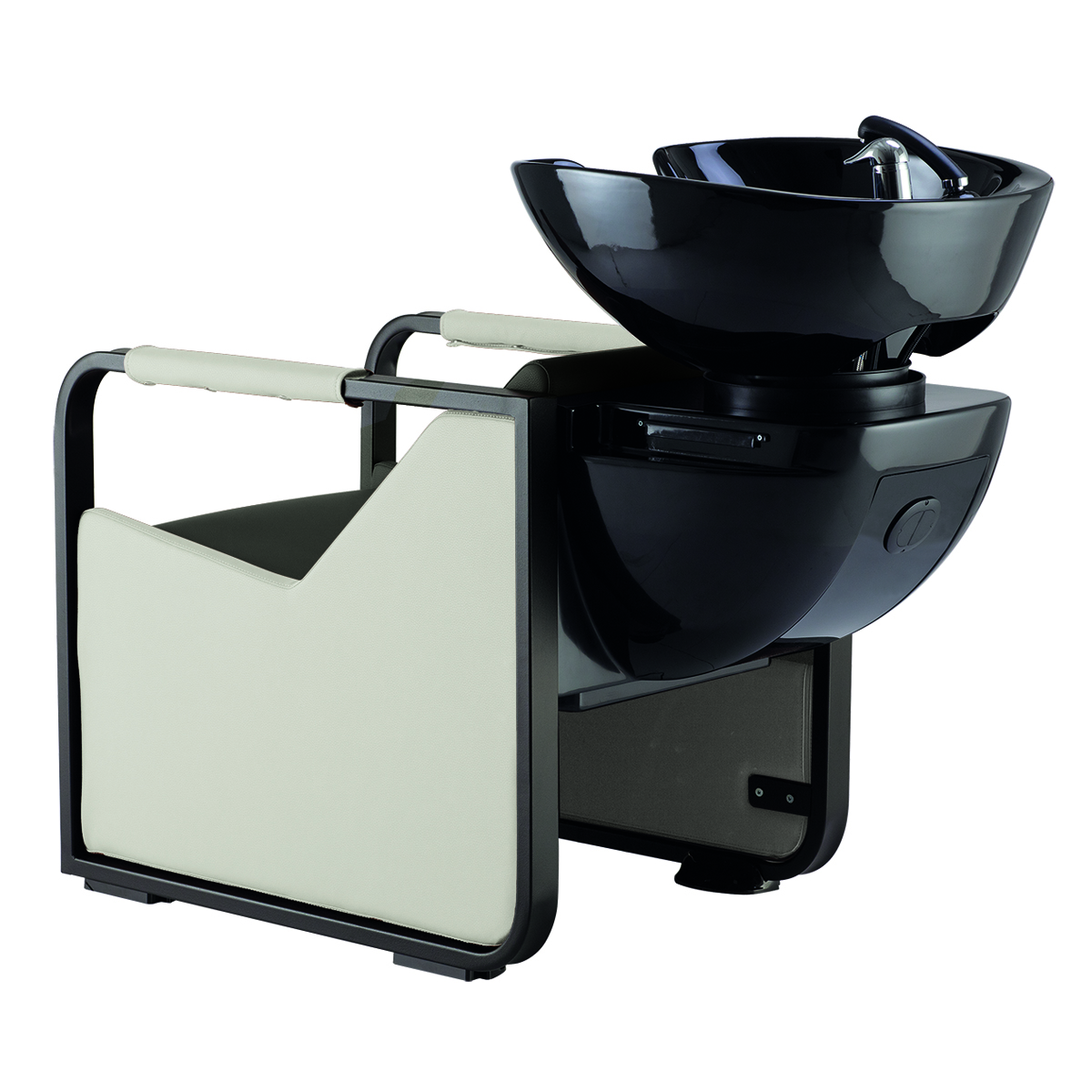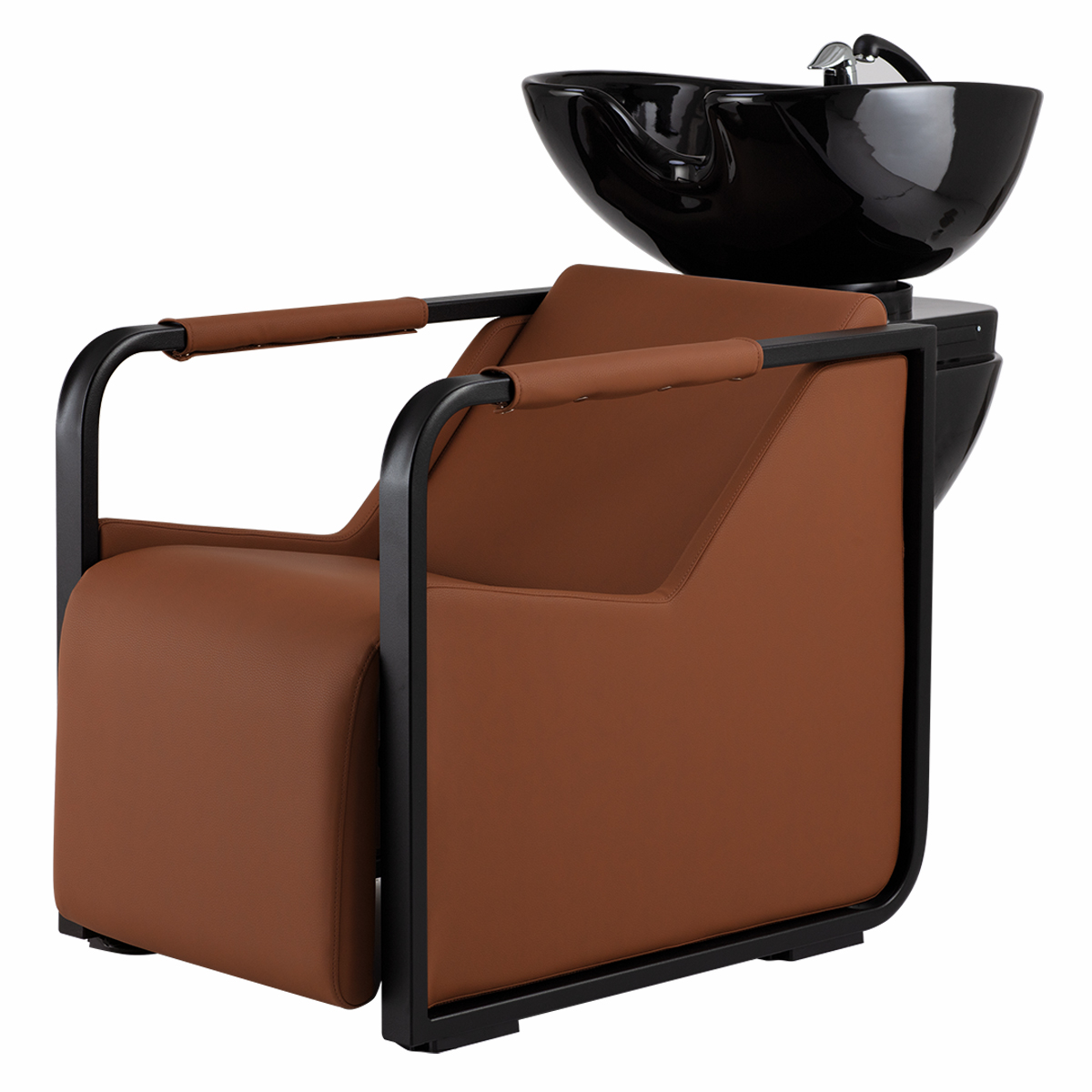 Мойка парикмахерская. Каркас, сиденье и спинка выполнены из высококачественного вспененного полиуретана. Кресло оснащено металлическими подлокотниками со вставками из кожзама. Мойка комплектуется глубокой керамической раковиной с регулировкой угла наклона и комплектом смесителя. Обивка - искусственная кожа высшего качества.