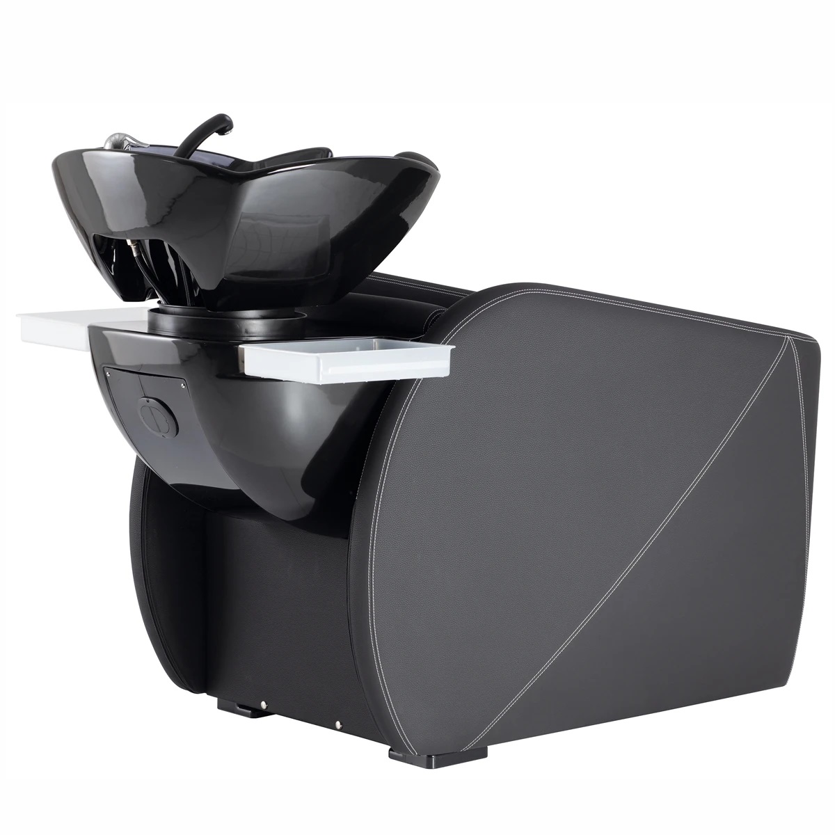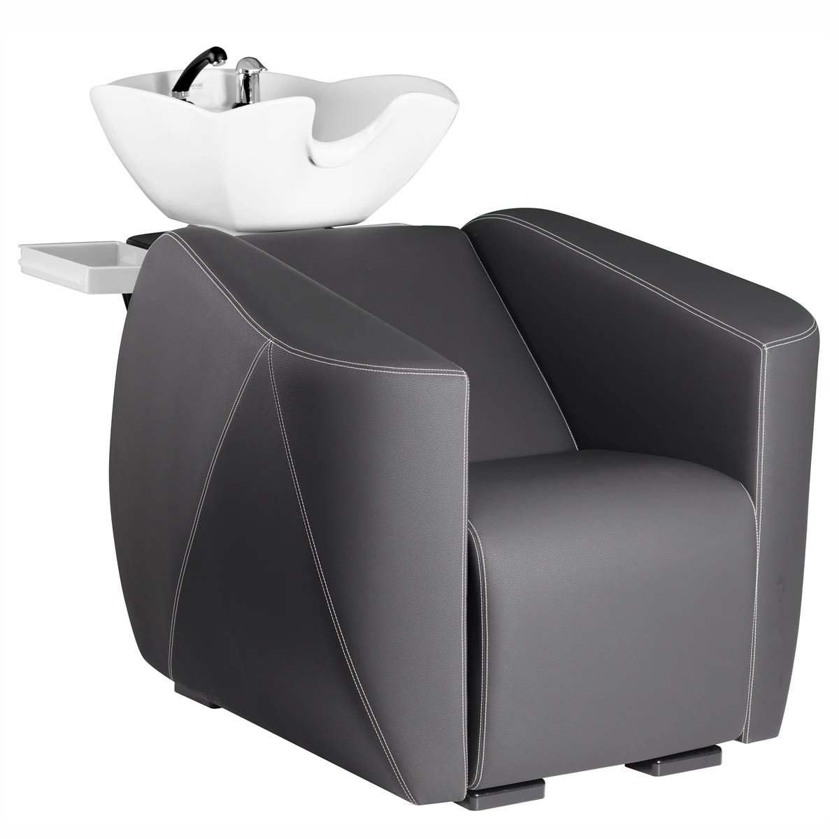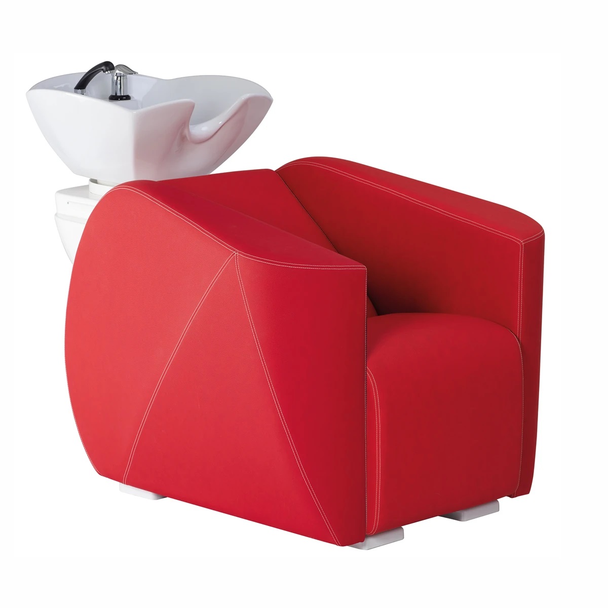 Мойка парикмахерская оригинальной формы. Каркас, сиденье и спинка выполнены из высококачественного вспененного полиуретана с вставками из дерева и металла. Кресло оснащено мягкими и комфортными подлокотниками. Мойка оснащена боковыми навесными полками для хранения инструментов. Мойка комплектуется глубокой керамической раковиной с регулировкой угла наклона и комплектом смесителя. Обивка - искусственная кожа высшего качества.