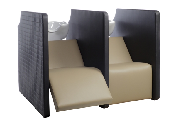 Мойка парикмахерская - двухместная с высоким уровнем комфорта и приватной зоной. Мойка оснащена электрической подножкой, обеспечивая клиенту максимальный комфорт. Мойка комплектуется глубокими керамическими раковинами с регулировкой угла наклона и комплектом смесителя. Обивка - искусственная кожа высшего качества.