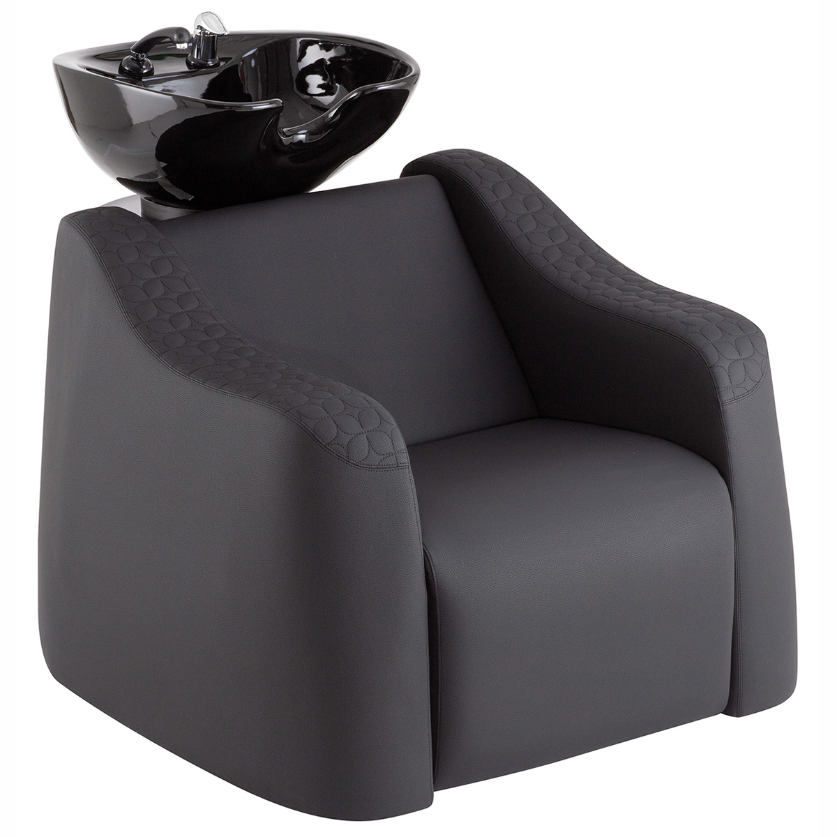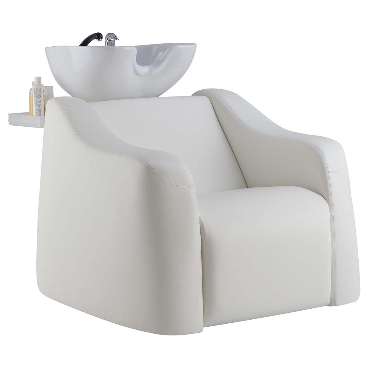 Мойка парикмахерская. Каркас, сиденье и спинка выполнены из высококачественного вспененного полиуретана с вставками из дерева и металла. Мойка комплектуется глубокой керамической раковиной с регулировкой угла наклона и комплектом смесителя. Обивка - искусственная кожа высшего качества.