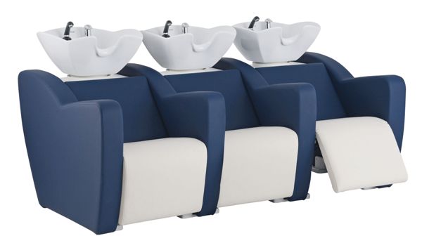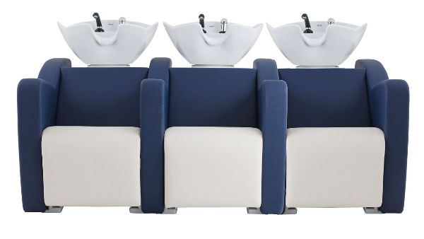 Мойка парикмахерская тройная. Каркас, сиденье и спинка выполнены из высококачественного вспененного полиуретана с вставками из дерева и металла. Мойка комплектуется глубокими керамическими раковинами с регулировкой угла наклона и комплектами смесителей. Обивка - искусственная кожа высшего качества.