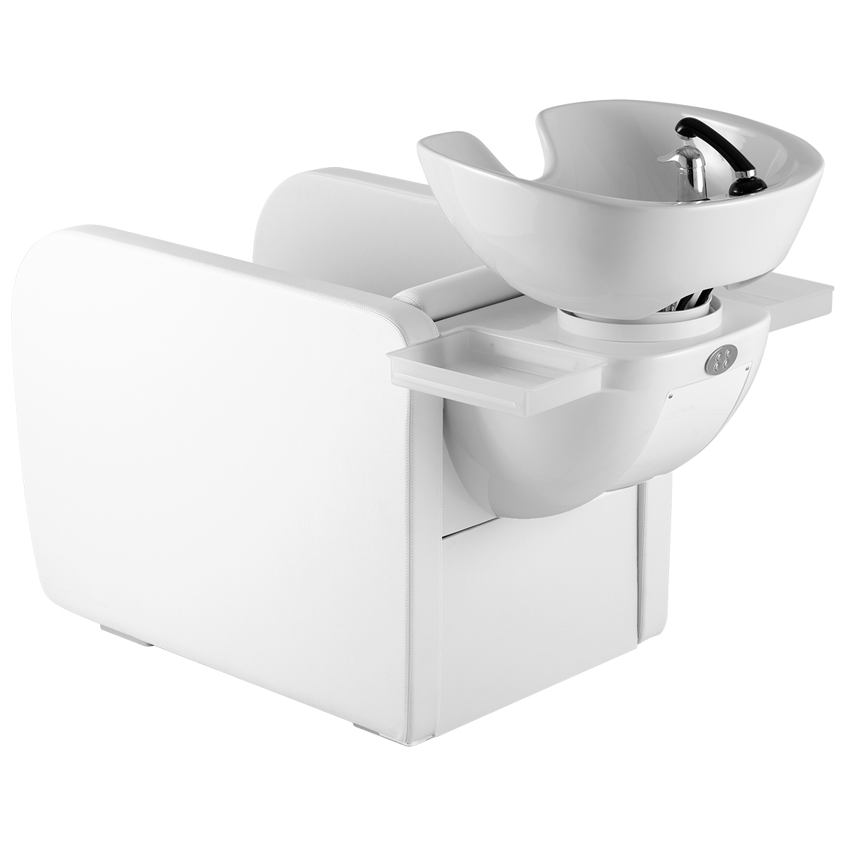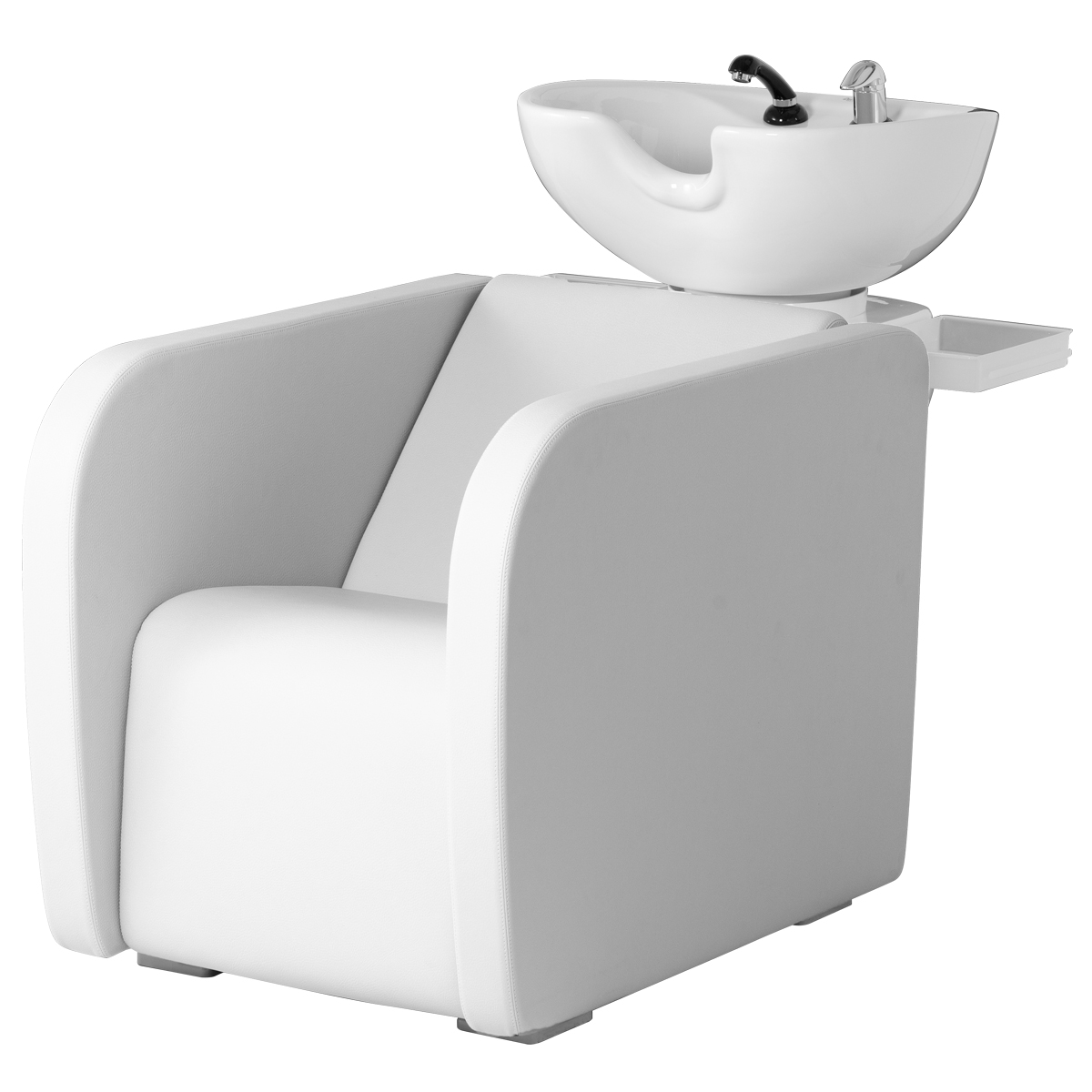 Мойка парикмахерская. Каркас, сиденье и спинка выполнены из высококачественного вспененного полиуретана с вставками из дерева и металла. Кресло оснащено мягкими и комфортными подлокотниками. Мойка оснащена боковыми навесными полками для хранения инструментов. Мойка комплектуется глубокой керамической раковиной с регулировкой угла наклона и комплектом смесителя. Обивка - искусственная кожа высшего качества.