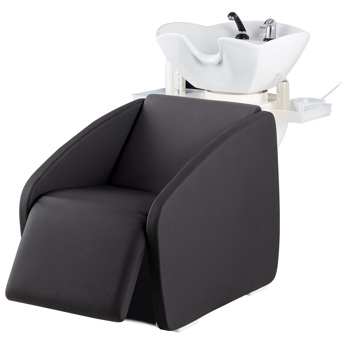 Мойка парикмахерская. Каркас, сиденье и спинка выполнены из высококачественного вспененного полиуретана с вставками из дерева и металла. Кресло оснащено мягкими и комфортными подлокотниками. Мойка комплектуется глубокой керамической раковиной с регулировкой угла наклона и комплектом смесителя. Обивка - искусственная кожа высшего качества.