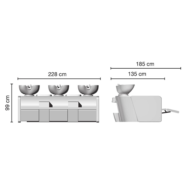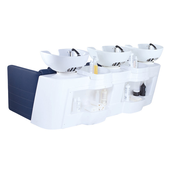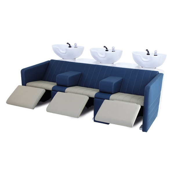 Широкая, комфортная, тройная парикмахерская мойка. Каркас, сиденье и спинка выполнены из высококачественного вспененного полиуретана с вставками из дерева и металла. Мойка оснащена пластиковым каркасом с нишами для хранения инструментов и аксессуаров, а также мягкими и комфортными подлокотниками. Мойка комплектуется глубокими керамическими раковинами с регулировкой угла наклона и комплектами смесителей. Обивка - искусственная кожа высшего качества.