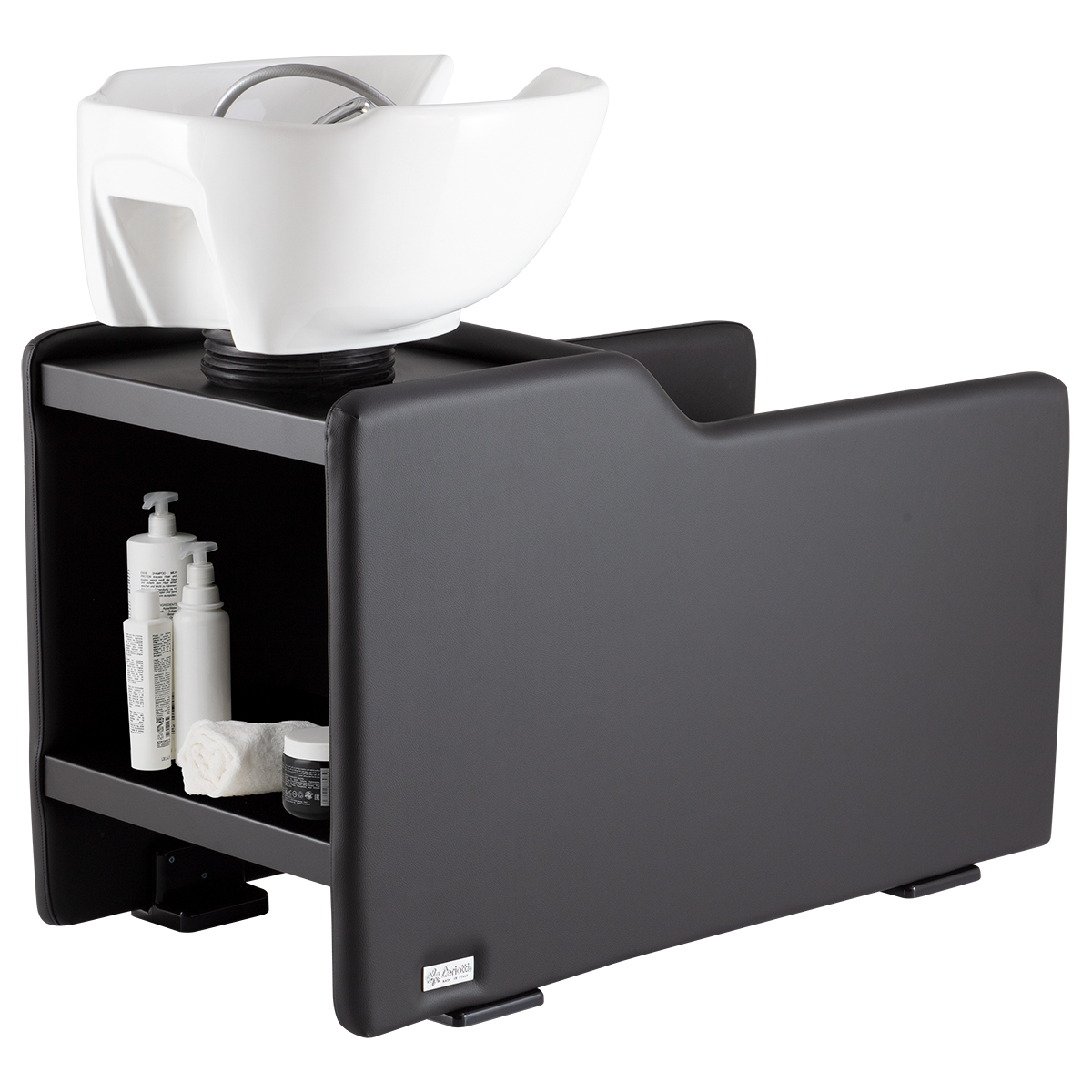 Мойка парикмахерская. Каркас, сиденье и спинка выполнены из высококачественного вспененного полиуретана с вставками из дерева и металла. Кресло оснащено мягкими и комфортными подлокотниками. Мойка оснащена металлическими столешницей и полкой для хранения инструментов. Мойка комплектуется глубокой керамической раковиной с регулировкой угла наклона и комплектом смесителя. Обивка - искусственная кожа высшего качества.