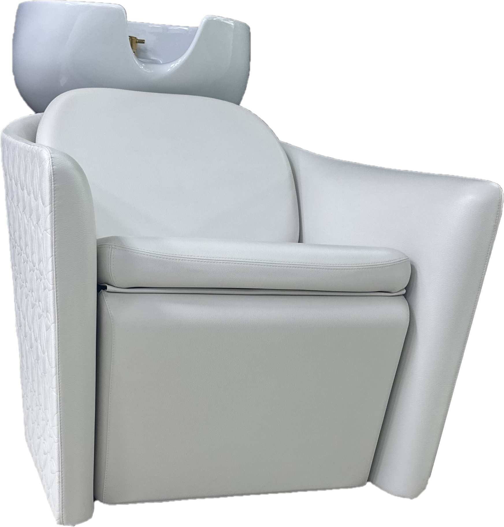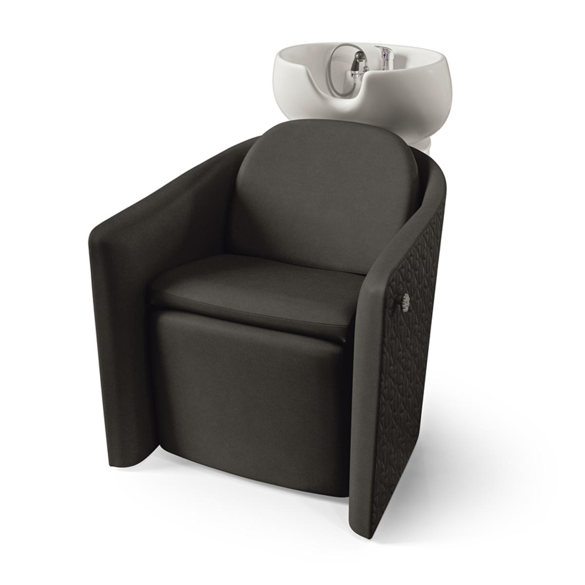 Дизайнерская мойка с высоким уровнем комфорта. Мойка оснащена мягкими и комфортными подлокотниками, декоративной ручкой для подвешивания сумок, электрической регулировкой сидения, спинной части и опоры для ног, обеспечивая клиенту максимальный комфорт. Движения синхронизированные, что позволяет клиенту принять положение "полулежа". Внешняя часть подлокотников и спинки может быть выполнена в кожзаме LOTUS SKAI (Белый WHITE, черный BLACK или розовый PINK). Мойка комплектуется глубокой керамической раковиной с механизмом скольжения по горизонтали, регулировкой угла наклона и комплектом смесителя. Обивка - искусственная кожа высшего качества.