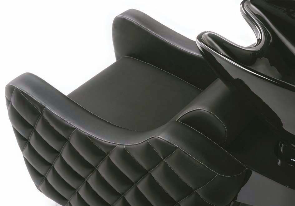 Элегантная мойка с высоким уровнем комфорта. В конструкции мойки - плавные линии, что придает данной модели элегантность и лаконичность. Каркас мойки выполнен из высококачественного полиуретана. Кресло оснащено мягкими и комфортными подлокотниками. Обивка - искусственная кожа высшего качества. Мойка комплектуется глубокой керамической раковиной с регулировкой угла наклона и комплектом смесителя с DROP-STOP "каплезащитным" душем в хромированном цвете.
