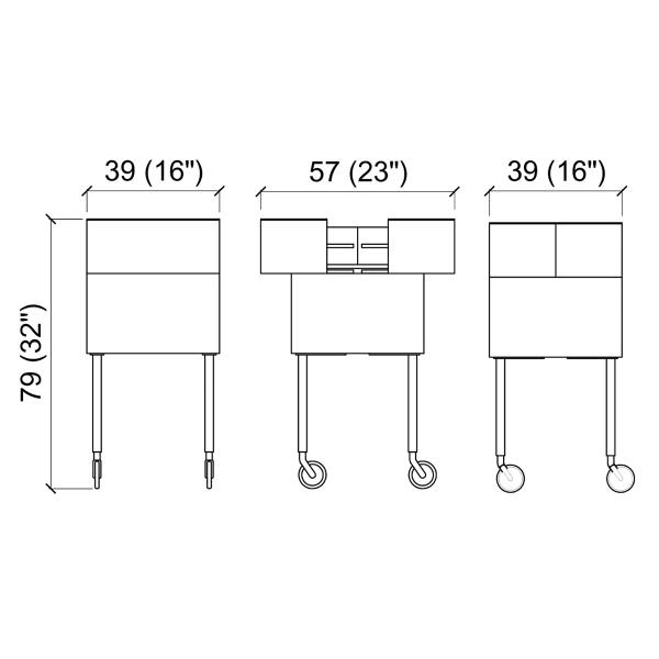 Тележка многофункциональная с раздвижной верхней частью. Корпус тележки выполнен в ламинате белого цвета. Тележка оснащена колесиками.