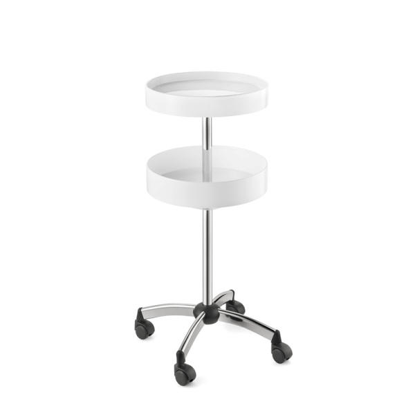 Тележка двухъярусная из пластика на колесах. Идеально подходит в качестве подставки под шампуни и для использования рядом с парикмахерской мойкой.