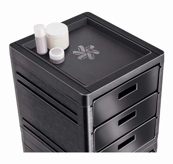 Тележка парикмахерская закрытого типа на бесшумных колесиках "NO HAIR". Тележка выполнена из прочного пластика. Тележка оснащена выдвижными ящиками и съемными боковыми полками.
