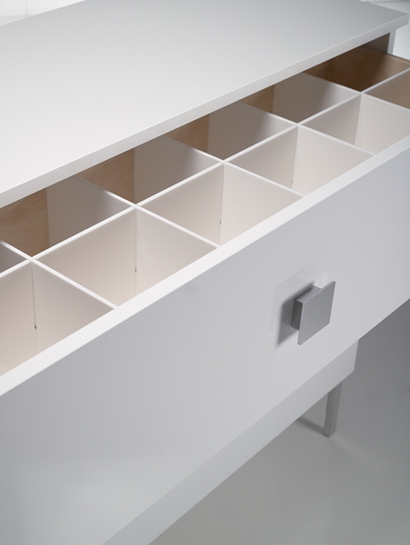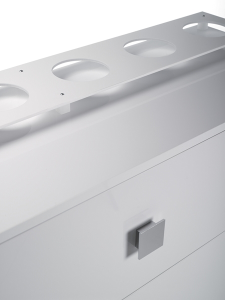 Тумба для хранения образцов краски и отходов к утилизации. Тумба выполнена из ламината или акрила по выбору клиента. Тумба оснащена двумя выдвижными ящиками и металлическими ножками.