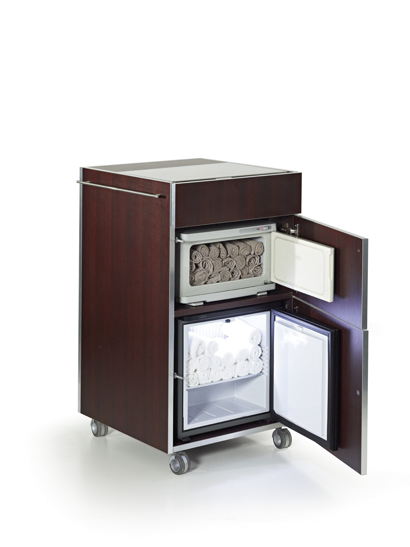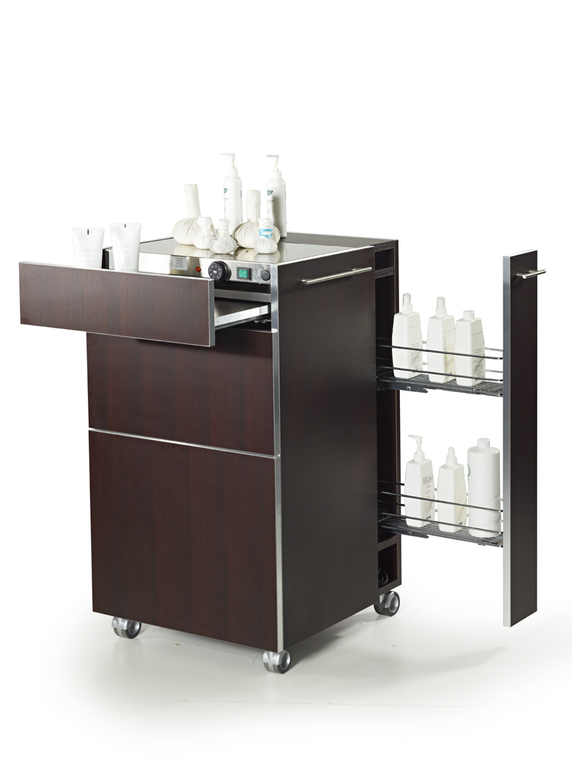 Многофункциональная тумба T-VALE для SPA процедур, изготовленная из натурального дерева, характеризуется минималистичным дизайном. Наличие всех необходимых инструментов повышает степень эффективности действий мастера, что улучшает конечный результат и удовлетворяет клиента. Тумба оснащена выдвижными ящиками, распашными дверьми и бесшумными колесиками, с помощью которых она легко передвигается. Тумба комплектуется: нагревательной плитой, нагревателем для полотенец и холодильником.