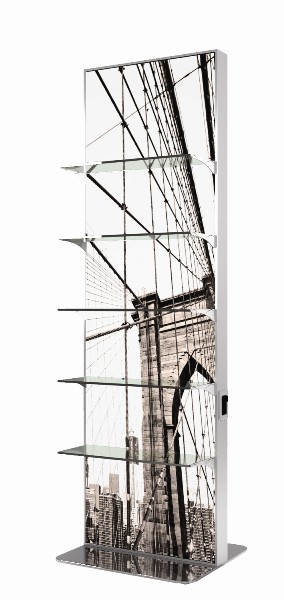 Вариант 2 - Двухсторонняя витрина со стекляными полками и выбранным клиентом изображением, крепление к полу.