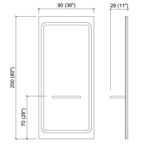Зеркало парикмахерское прямоугольной формы. Зеркало оснащено светодиодной подсветкой LED и столешницей выполненной в ламинате. Крепление к стене.