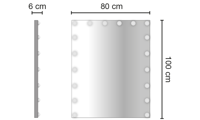 Зеркало парикмахерское для визажа с лампочками. Зеркало оснащено подсветкой. Крепление к стене.