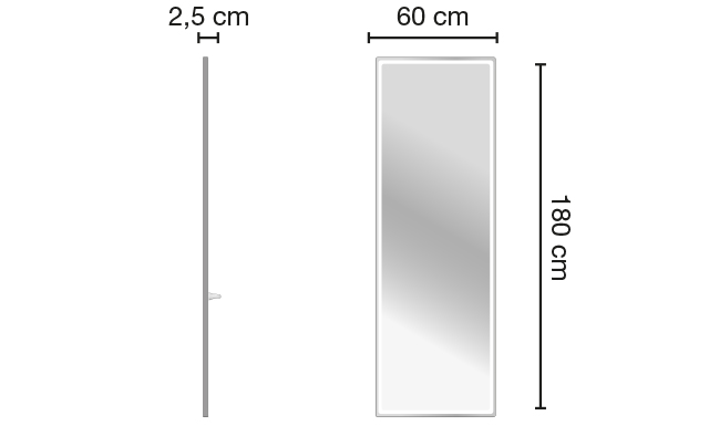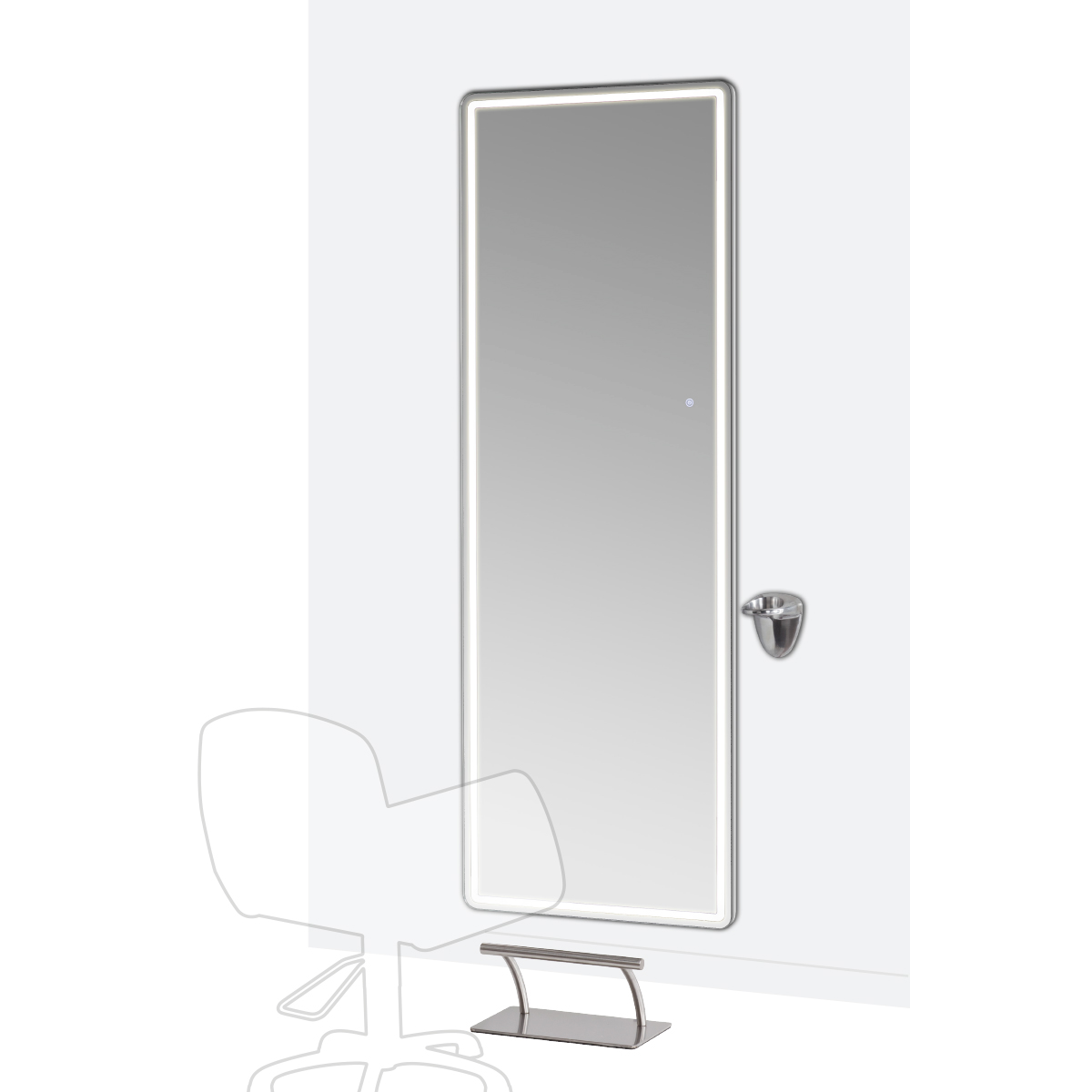 Зеркало парикмахерское одностороннее прямоугольной формы. Зеркало оснащено светодиодной подсветкой фенодержателем ALFA и подставкой под ноги KAPPA. Крепление к стене.