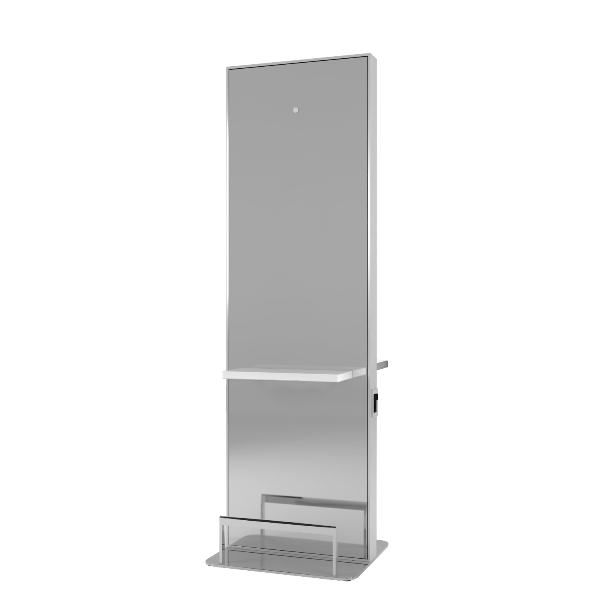 Вариант 2 - Двухсторонний рабочий туалет, крепление к полу. С одной стороны парикмахерское зеркало со столешницей и металлической подставкой для ног. С другой стороны выбранное клиентом изображение.