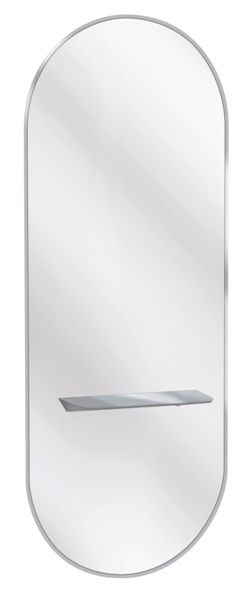 Зеркало парикмахерское одностороннее овальной формы. Зеркало оснащено хромированной столешницей. Крепление к стене.