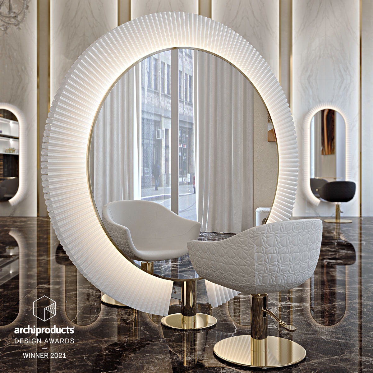 Двусторонний рабочий туалет округлой формы с декоративной рамкой на два рабочих места. Рабочий туалет оснащен светодиодной подсветкой LED (3000 K). Крепление к полу.
