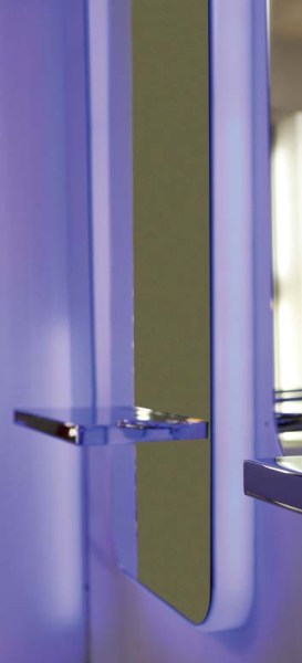 Зеркало парикмахерское со светодиодной подсветкой. Каркас выполнен из белого оргстекла. Зеркало оснащено многоцветной светодиодной системой освещения с ДУ пультом. Крепление к стене.