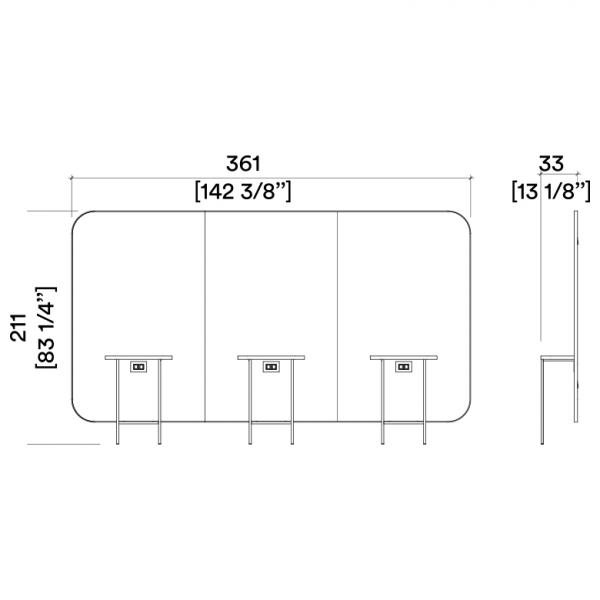 Рабочий туалет на три рабочих места. Рабочий туалет оснащен консолями, выполненными из металла окрашенного в черный цвет, с подставками под ноги. Окантовка столешниц выполнена в глянцевом черном или золотом цвете.