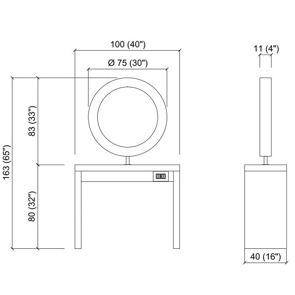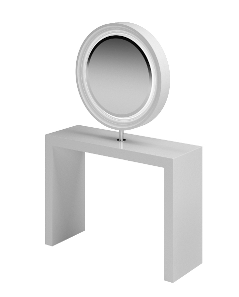 Двусторонний рабочий туалет на два рабочих места. Рабочий туалет выполнен в ламинате белого цвета. Рабочий туалет оснащен зеркалом округлой формы в декоративной раме.