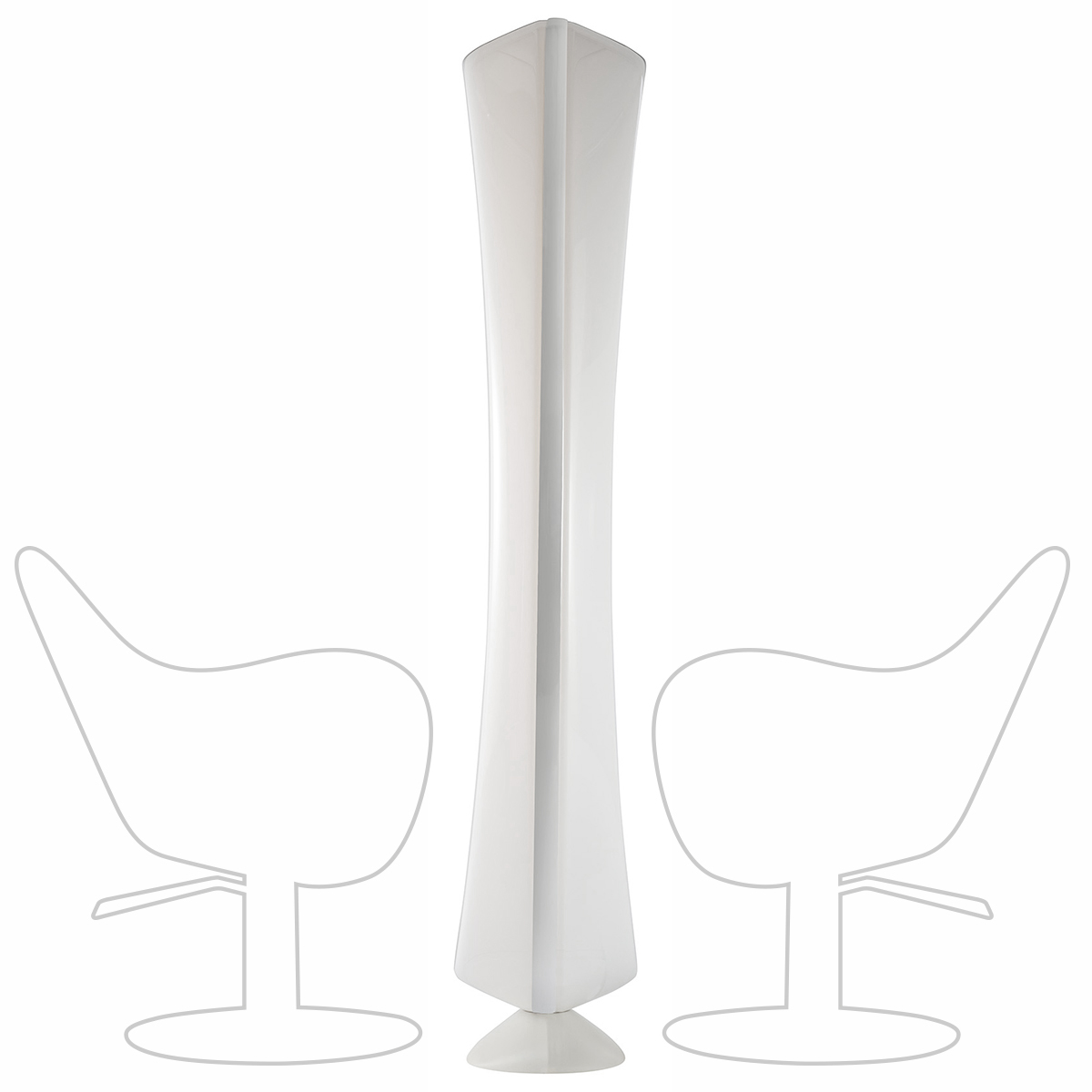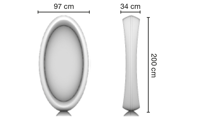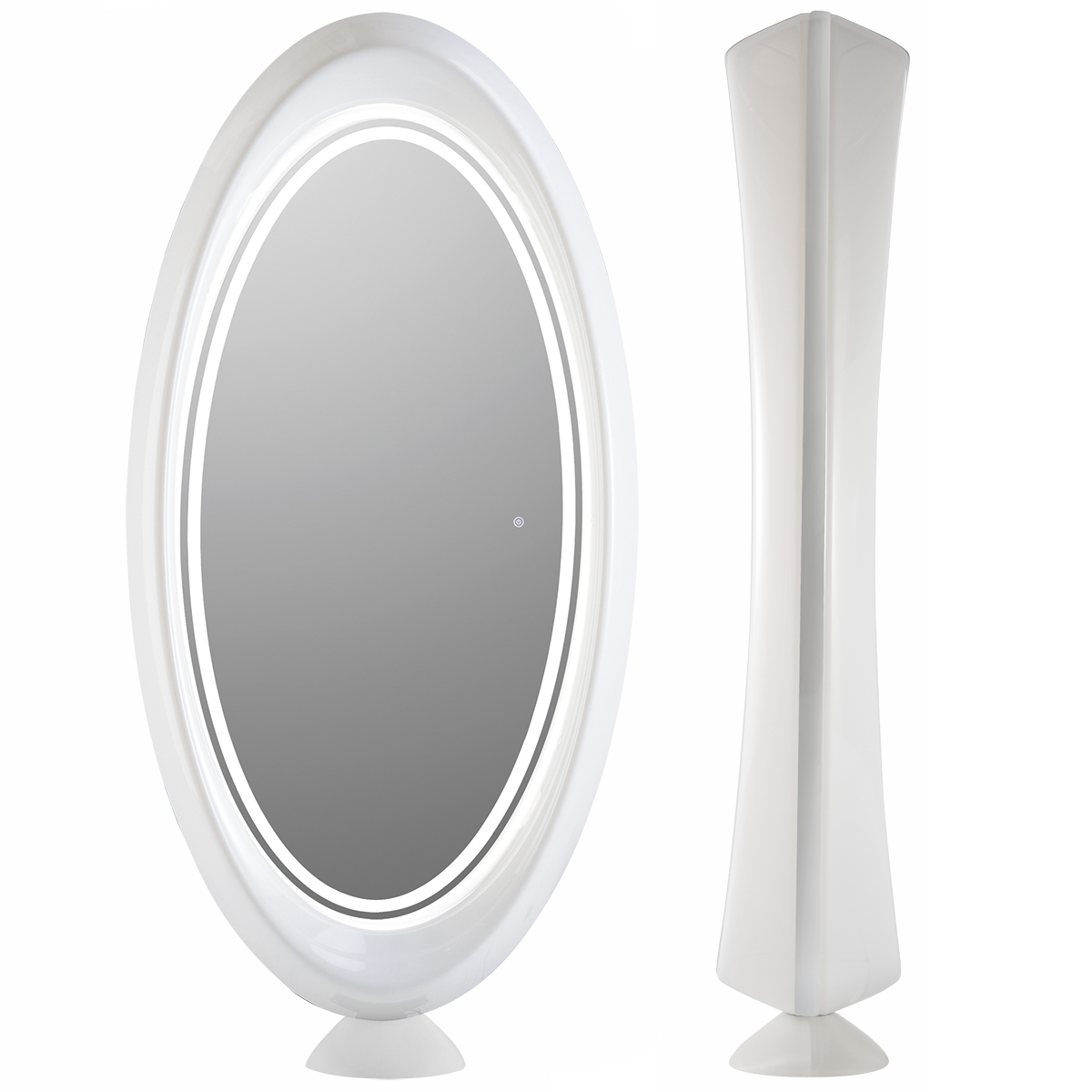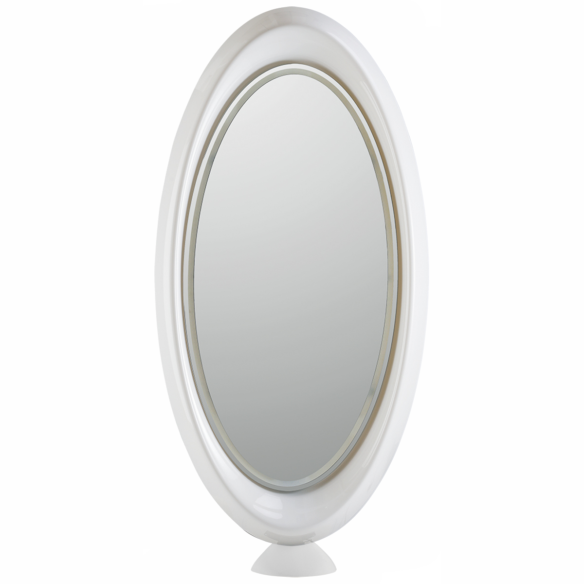 Зеркало парикмахерское двустороннее округлой формы. Каркас выполнен из глянцевого пластика белого цвета. Крепление к полу.